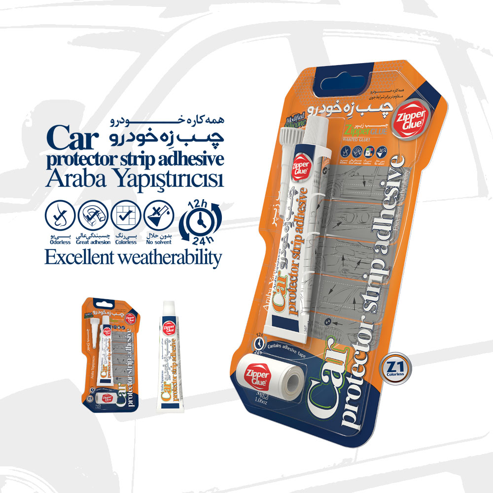 چسب خودروی زیپر بر پایه پلیمرهای سیلیکونی می باشد که در تماس با رطوبت هوا پخت می شود مقاومت عالی در برابر شرایط جوی و حفظ کیفیت و ماندگاری بالا سبب شده است که این محصول انتخابی مناسب جهت استفاده در قسمت های مختلف خودرو نظیر چسباندن زه خودرو ،آینه های جانبی و داخل، شیشه ها، انواع قطعات تزئینی و … باشد.